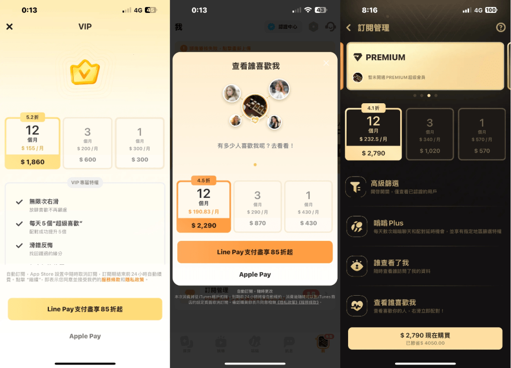 - 📕 PREMIUM專屬特權 =包含 【VIP特權】+【 查看誰喜歡你】+額外【PREMIUM功能】