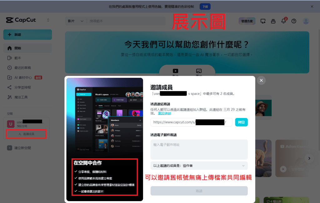 ⚠️ 如何登入桌面板Capcut Pro: 手機下載Caput APP,登入Capcut Pro帳密後,在用Capcut裡面的掃QR CODE的方式去掃桌面板Capcut 就能登入了。