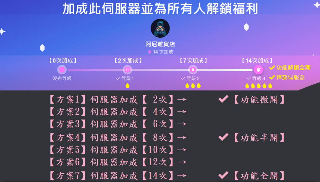 ⚠️如果遇到Discord官方政策清退加成機器人,無法補加成,請買家同意再作購買。