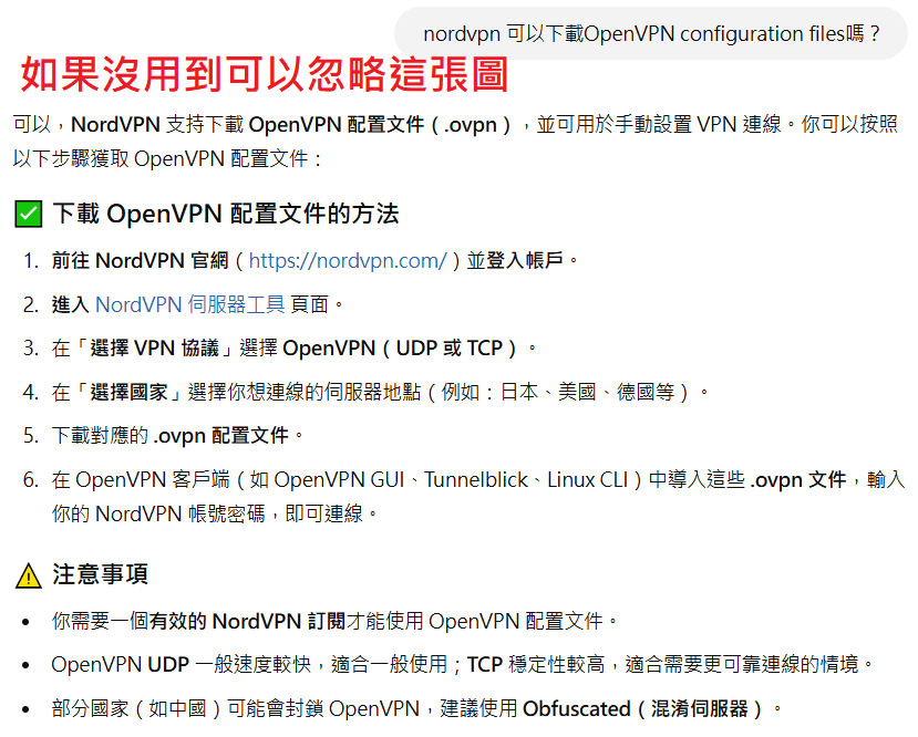 ⚠️ 遇到任何連線問題請詢問nordvpn客服。