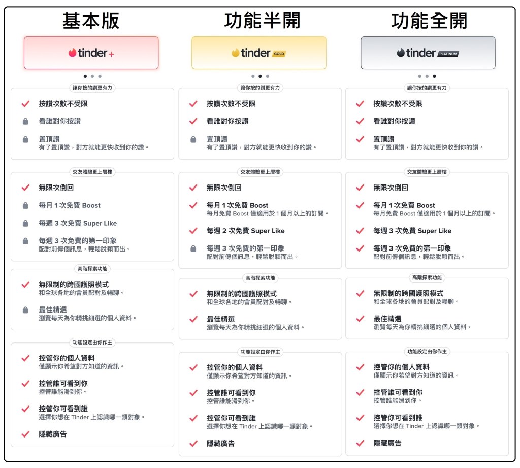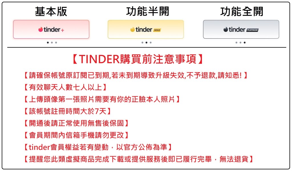 ⚠️ Tinder會員權益若有變動,以官方公布為準。